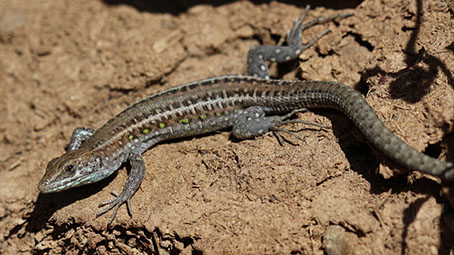 Peters, W.C.H. & Doria, G. (1882) - Note erpetologiche e descrizione di una nuova specie di Lacerta delle Isole Canarie. - Annali del Museo Civico de Storia Naturale di Genova, (1) 18: 431-434.  Bischoff, W. (1985) - Die Herpetofauna der Kanarischen Inseln. IV. Die Atlantische Eidechse, Gallotia atlantica (PETERS & DORIA, 1882). - herpetofauna, 7 (37): 15-24.  ×Die Beziehungen der kanarischen Eidechsen der Gattung Gallotia zu den anderen Lacertiden werden diskutiert. Die äußerlich klar zu erkennende Gallotia atlantica gliedert sich in 2 Unterarten G. a. atlantica und G. atlantica mahoratae. Der Lebensraum und die derzeit bekannten Daten über die Lebensweise werden beschrieben. Hinweise zur Haltung dieser Art im terrarium schließen den Beitrag ab. Gonzáles, P. & Pinto, F. & Nogales, M. & Jiménez-Asensio, J. & Hernández, M. & Cabrera, V.M. (1996) - Phylogenetic relationships of the Canary islands endemic lizard genus Gallotia (Sauria: Lacertidae), inferred from mitochondrial DNA sequences. - Molecular Phylogenetics and Evolution, 6 (1): 63-71.  ×Phylogenetic relationships among species and subspecies of the Canary Island endemic lizard genus Gallotia are inferred base on nucleotide sequence of fragments of 12S ribosomal RNA and cytochrome b mitochondrial genes. The four morphologically established species have also been recognized at the molecular level. Relative affinities among species follow an eatsern-western geographic transect. The nearly extinct species Galloti simonyi from the most western island of El Hierro is closely related to the common western species Gallotia galloti. The nearest branch to this pair is Gallotia stehlini from the central island of Gran Canaria, and finally, Gallotia atlantica from the two eastern and geologically oldest islands appears as the most distantly related species of the group. At the statistical level, four subspecies can be recognized in G. galloti, but only two in G. atlantica. Bischoff, W. (1998) - Gallotia atlantica (Peters & Doria, 1882) - Atlantische Eidechse, Purpurarien-Eidechse. - In: Bischoff, W. (Hrsg.): Handbuch der Reptilien und Amphibien Europas. Die Reptilien der Kanarischen Inseln, der Selvagens-Inseln und des Madeira Archipels. Wiesbaden (Aula). 236-264.  Molina Borja, M. & Rodriguez-Dominguez, M.A. (2004) - Evolution of biometric and life history traits in lizards (Gallotia) from the Canary islands. - Journal of Zoological Systematics and Evolutionary Research, Berlin, 42 (1): 44-53.  ×The aim was to study as to how biometric and life-history traits of endemic lacertids in the Canary Islands (genus Gallotia) may have evolved, and possible factors affecting the diversification process of this taxon on successively appearing islands have been deduced. To that end, comparative analyses of sexual dimorphism and scaling of different body, head and life-history traits to body size in 10 species/subspecies of Gallotia have been carried out. Both Felsenstein`s independent contrasts and Huey and Bennett`s `minimum evolution` analyses show that male and female snout-vent length (SVL) changed proportionally (sexual size dimorphism not changing with body size) throughout the evolution of these lizards and all within-sex biometric traits have changed proportionally to SVL. Life-history traits (size at sexual maturity, clutch size, hatchling SVL and mass, and life span) are highly correlated with adult female body size, the first two being the only traits with a positive allometry to female SVL. These results, together with the finding that the slope of hatchling SVL to female SVL regression was lower than that of SVL at maturity to female SVL, indicates that larger females reach maturity at a larger size, have larger clutches and, at the same time, have relatively smaller hatchlings than smaller females. There was no significant correlation between any pair of life-history traits after statistically removing the effect of body size. As most traits changed proportionally to SVL, the major evolutionary change has been that of body size (a ca. threefold change between the largest and the smallest species), that is suggested to be the effect of variable ecological conditions faced by founder lizards in each island.