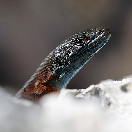 Bibron, M. & Bory de Saint-Vincent, J.B. (1833) - Description of Podarcis peloponnesiacus and Algyroides moreoticus. - In: Vertébrés a sang froid. Reptiles et poissons. Reptiles. Geoffroy & Geoffroy, Expédition Scientifique de Morée, Tome III. 1re partie, Zoologie: pp. 57-76.  Mayer, W. & Lutz, D. (1990) - Chemosystematische Untersuchungen zur Phylogenese der Gattung Algyroides und ihrer systematischen Position gegenüber der Sammelgattung Lacerta (Reptilia: Sauria: Lacertidae). - Zoologischer Anzeiger, Leipzig, 224: 99-105. Harris, D.J. & Arnold, E.N. & Thomas, R.H. (1999) - A phylogeny of the European lizard genus Algyroides Bibron and Bory 1833 based on DNA sequence, with comments on the evolution of the group. - Journal of Zoology, London, 249 (1): 49-60.  ×The four species of Algyroides Bibron & Bory, 1833 form part of the relatively plesiomorphic Palaearctic clade of lacertids comprising Lacerta and its allies. An estimate of phylogeny based on DNA sequence from parts of the 12S and 16S rRNA mitochondrial genes confirms the monophyly of the genus already suggested by several morphological features. The molecular data also indicates that relationships within the clade are: (A. nigropunctatus (A. moreoticus (A. fitzingeri, A. marchi))); this agrees with an estimate of phylogeny based on morphology that assumes the taxon ancestral to Alygroides was relatively robust in body form, and not strongly adapted to using crevices. Initial morphological evolution within Algyroides appears to involve adaptation to crypsis in woodland habitats. The most plesiomorphic form (A. nigropunctatus) is likely to have originally climbed extensively on tree boles and branches and there may have been two subsequent independent shifts to increased use of litter and vegetation matrices with related anatomical changes (A. moreoticus, A. fitzingeri), and one to increased use of crevices (A. marchi). Some members of Algyroides are strikingly similar in superficial morphology to particular species of the equatorial African genus Adolfus. This resemblance results from a combination of many shared primitive features plus a few independently acquired derived ones that are likely to give performance advantage in the relatively similar structural niches that these forms occupy. This study provides evidence that: (1) the use of a combination of molecular and morphological data may sometimes allow the estimation of ancestral anatomical features when these are otherwise unknown; (2) process considerations may permit a choice to be made in cases of character evolution where tree topology means that equally parsimonious alternatives exist; such decisions about character evolution may allow ecological shifts to be similarly assessed; (3) parallel evolution in ecological analogues may involve relatively few characters. Arnold, E.N. & Arribas, O. & Carranza, S. (2007) - Systematics of the Palaearctic and Oriental lizard tribe Lacertini (Squamata: Lacertidae: Lacertinae), with descriptions of eight new genera. - Zootaxa, 1430: 1-86.  ×DNA sequence indicates the Lacertidae contain two subfamilies, Gallotiinae and Lacertinae, the latter comprising two