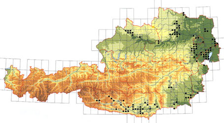 Source: Verbreitungsatlas Österreich - Lacerta viridis (Datenstand 1996).