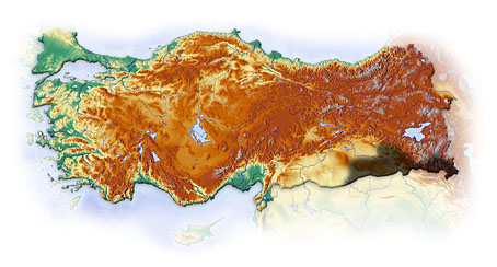 Mountainous region in the border region with Syria, Iraq and Iran, west to the vicinity of Mardin.